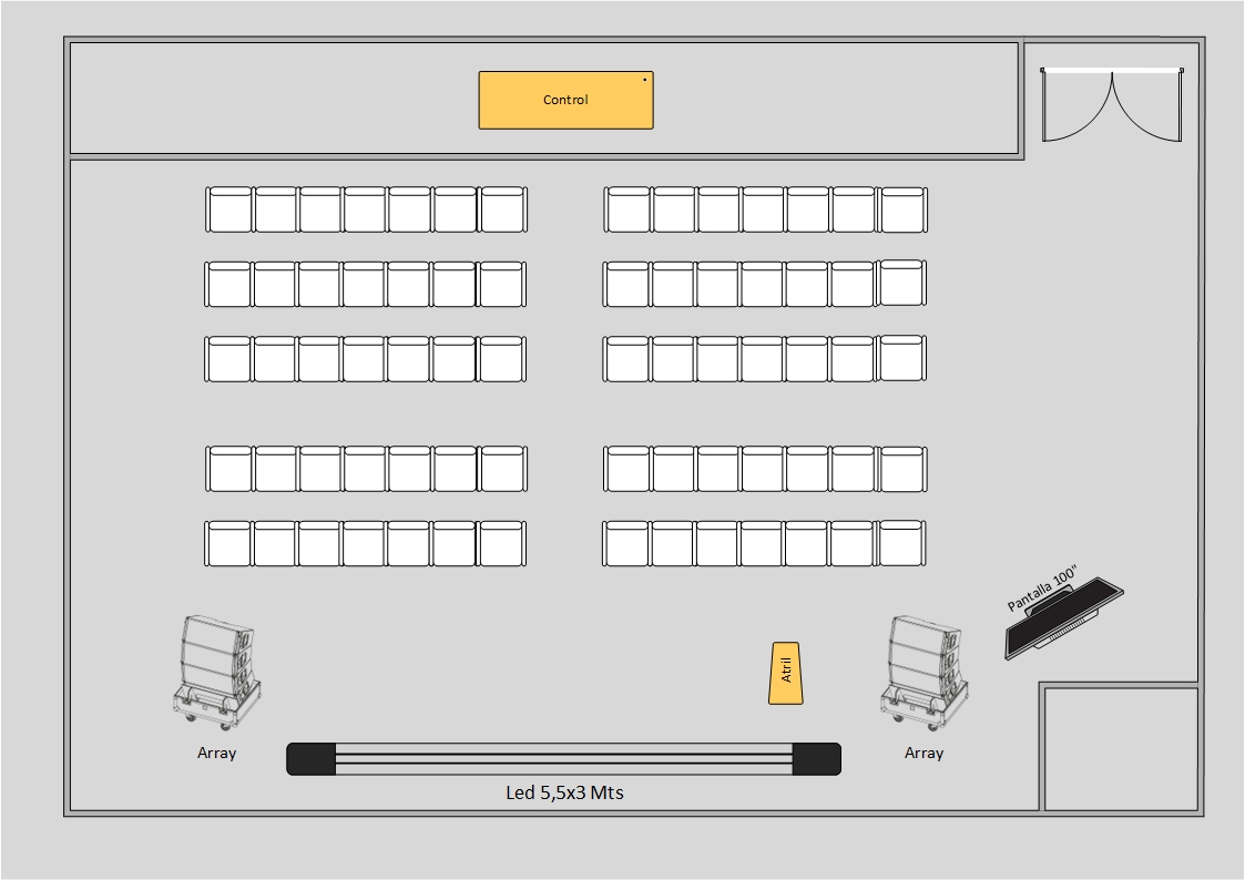 Aquí te dejamos un pequeño esquema de como debe estar ubicado el equipo en la sala: